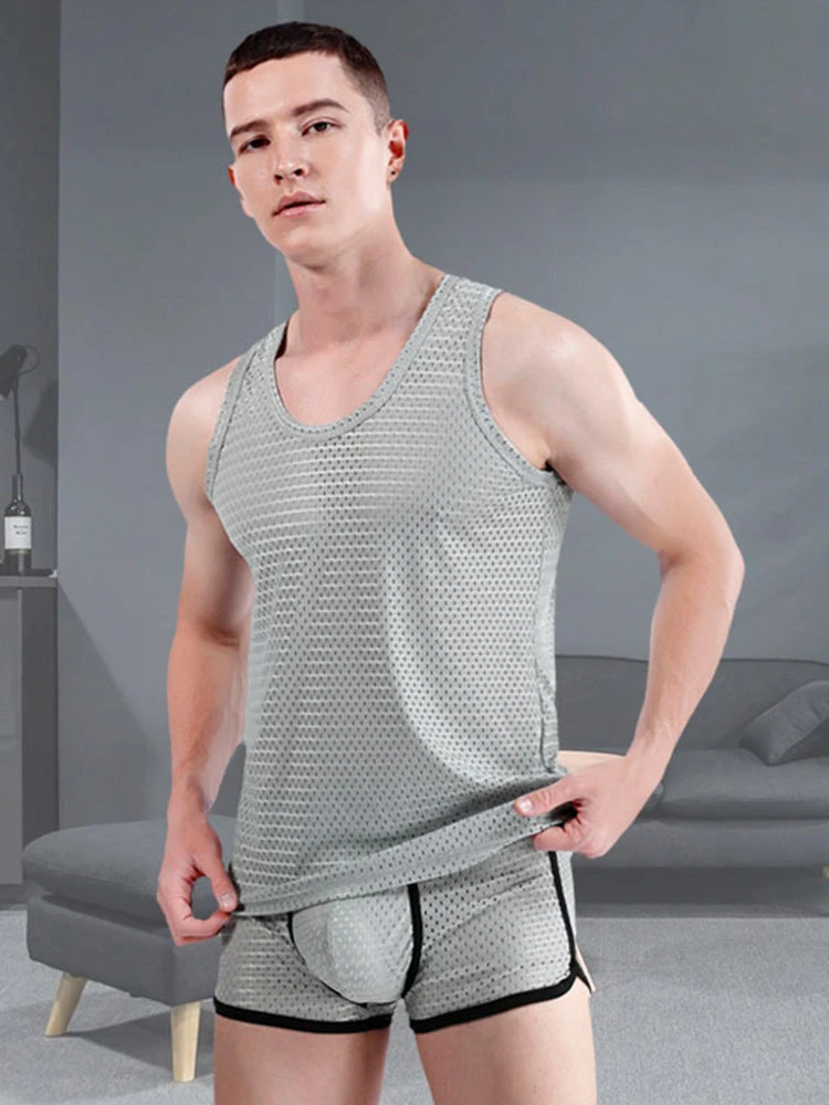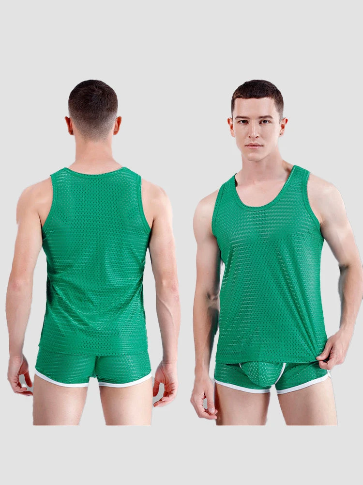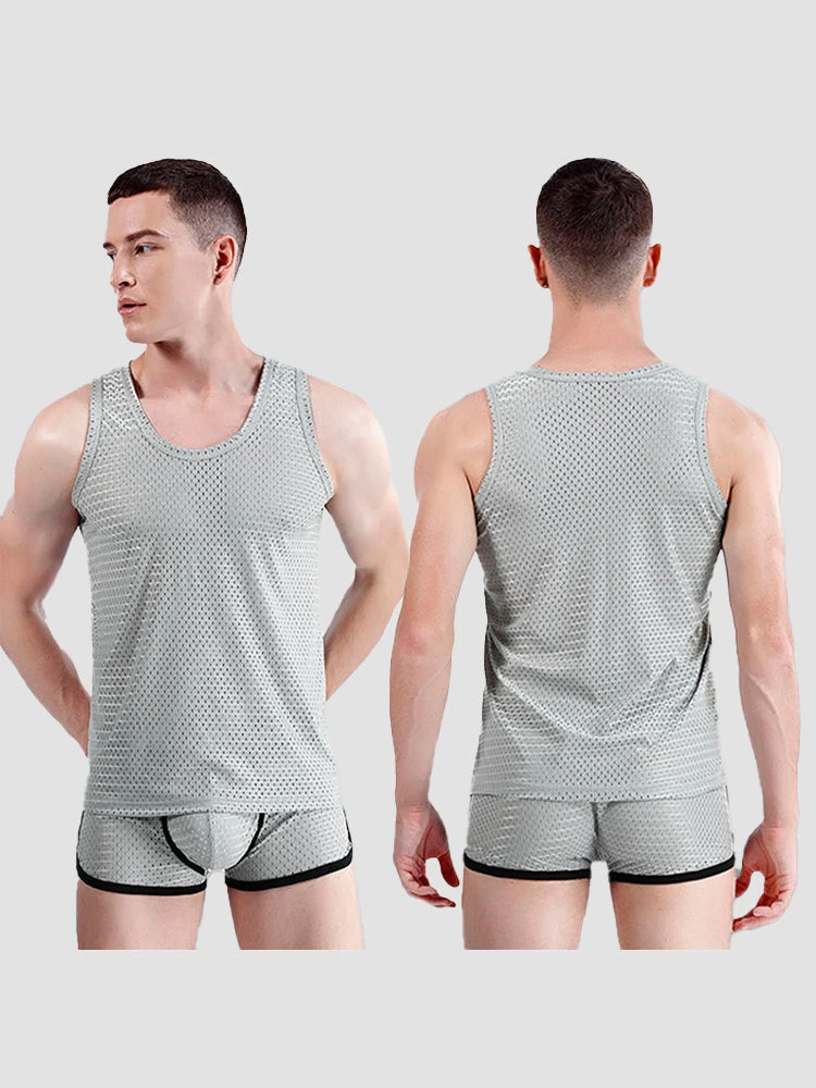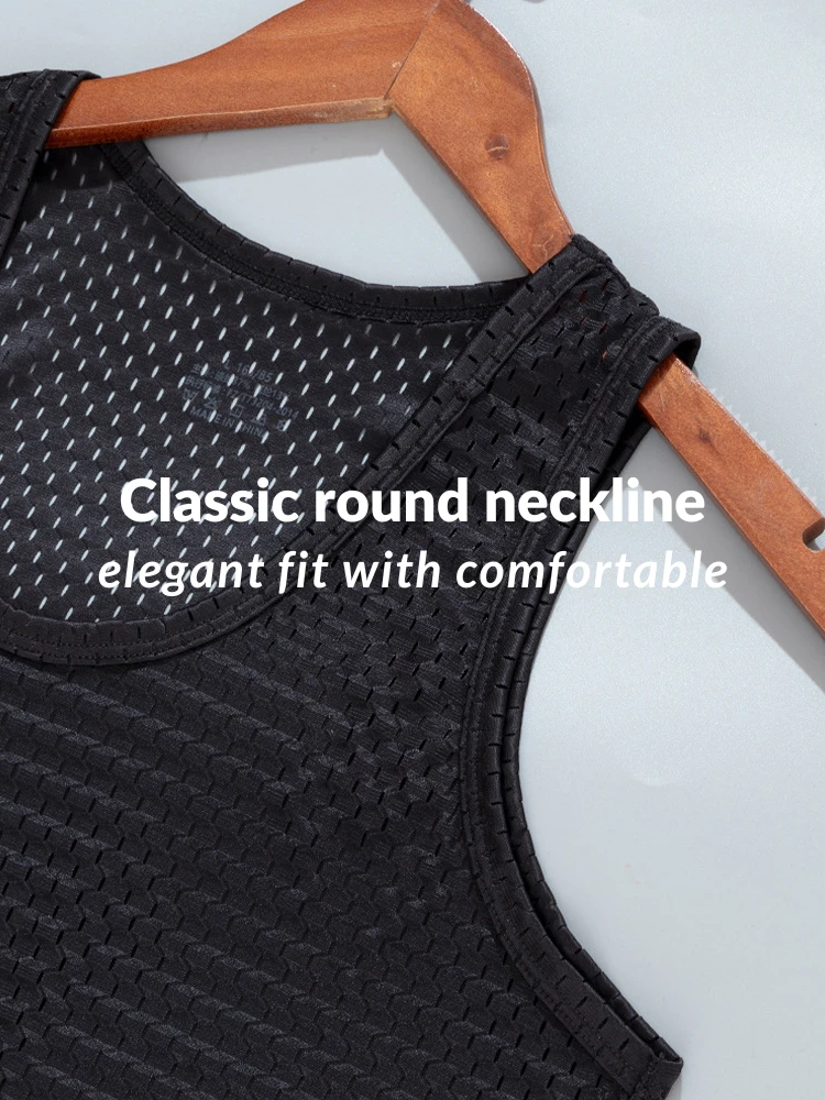 Designed for hot-weather comfort, this men’s lightweight mesh tank top features a breathable open-knit design that maximizes airflow to keep you cool all summer long. Crafted from premium moisture-wicking polyester, it effortlessly combats sweat while providing a featherlight, second-skin feel. The minimalist cut ensures unrestricted movement, whether you’re layering it under shirts or wearing it solo for workouts. Practical yet stylish, it’s the ultimate staple for beating the heat without compromising on comfort or durability.