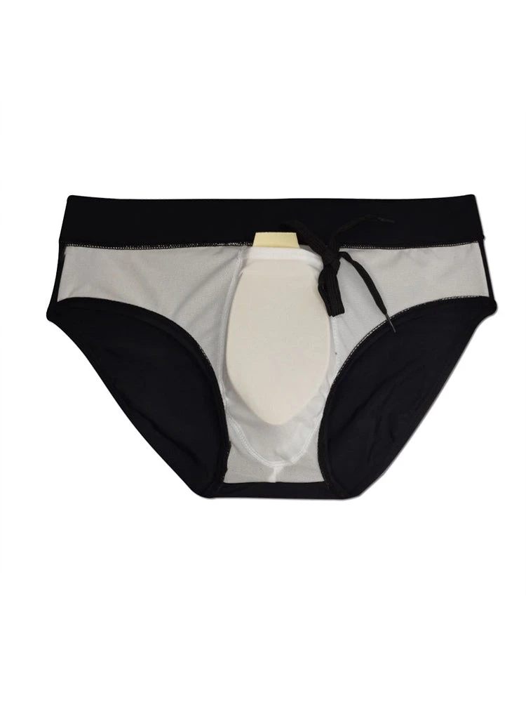 Men’s Padded Solid Drawstring Swim Briefs(Mens Padded Solid Drawstring Swimsuit Bikini Briefs)