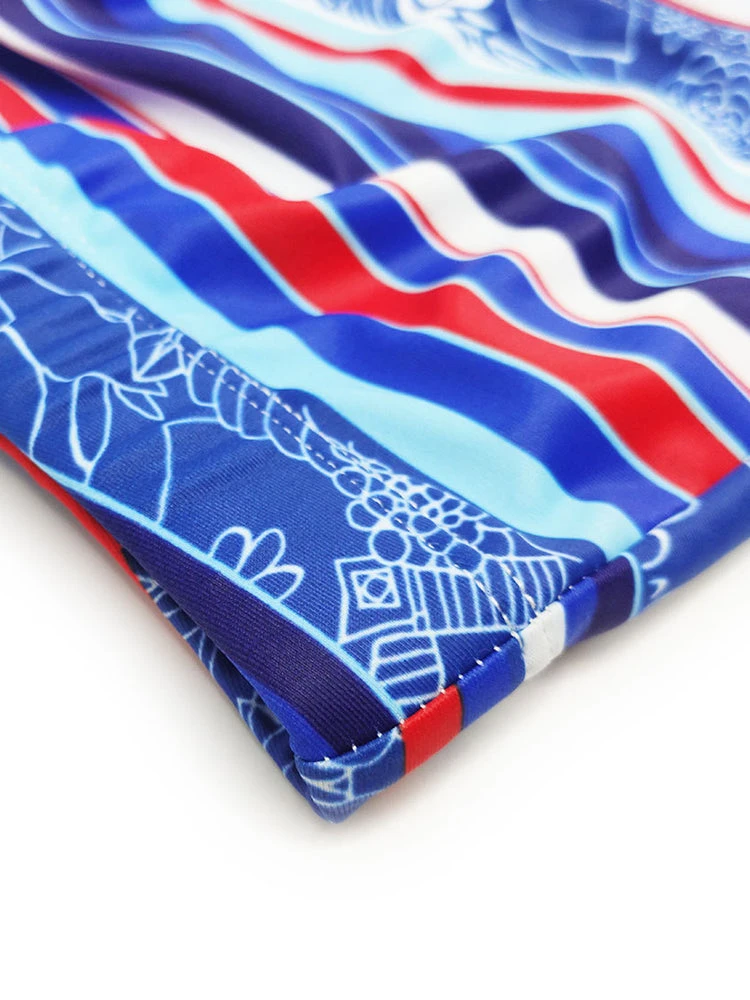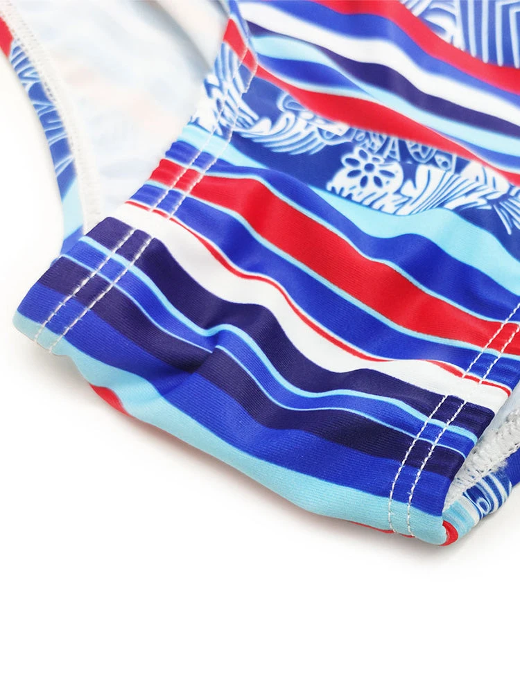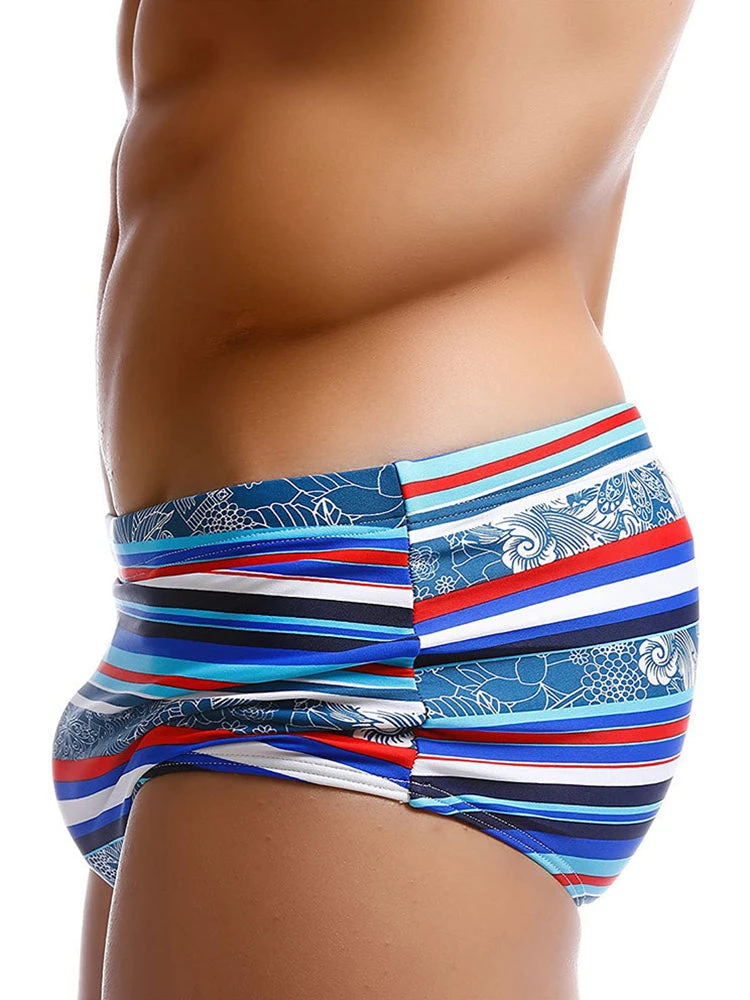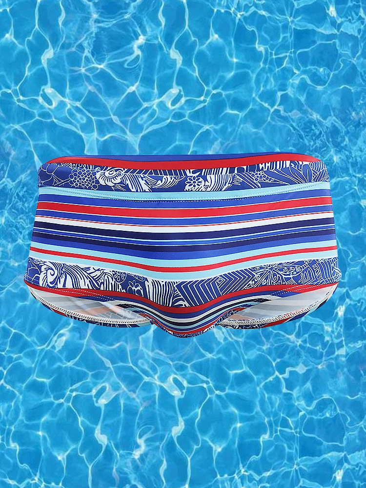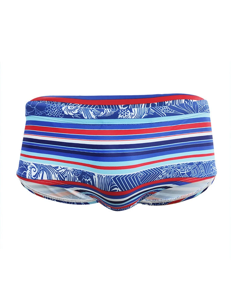 The Striped Trunk Square Leg Swimsuit is our best selling swimming trunk with wide sides, a front pouch for added room and mesh lining for support.