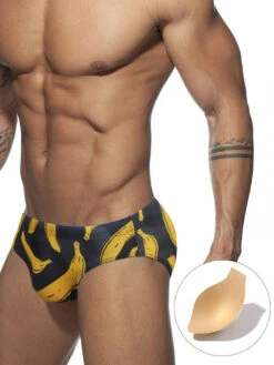 Men’s Banana Print Swim Briefs With Removable Pad(Mens Banana Print Swim Briefs With Removable Pad)