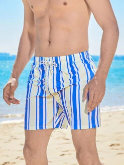 Men’s Drawstring Leisure Striped Swim Shorts(Mens Drawstring Leisure Striped Swim Shorts)