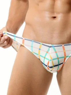 Men’s Mesh Briefs With Colorful Spliced Lines(Mens Mesh Briefs With Colorful Spliced Lines)